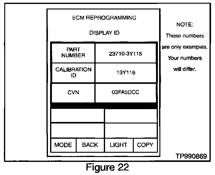 31. Press "CHECK ECM P/N" to confirm (i.e., take note of) the ECM part number on the vehicle to be reprogrammed (see Figure 22).