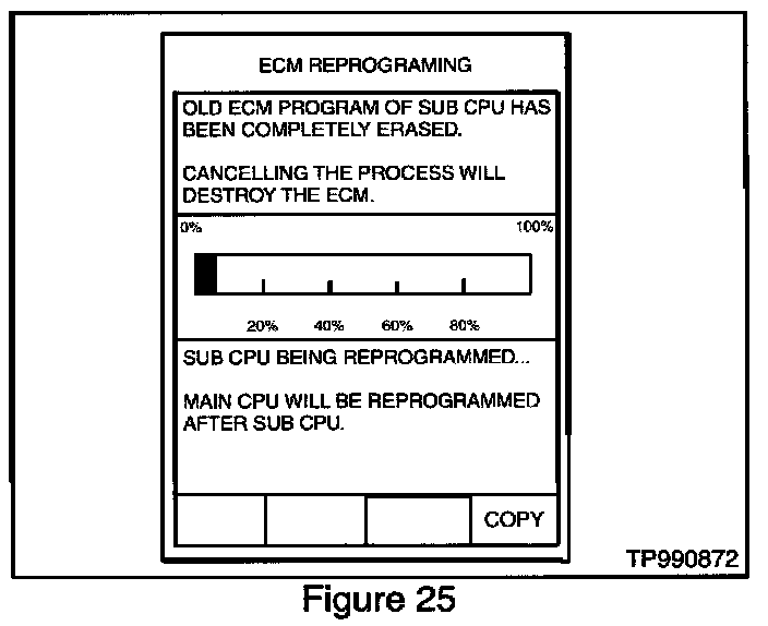 36. Press "START". After a moment the window shown in Figure 25 will appear. CONSULT-II will now turn off its screen backlight and reprogram the ECM.