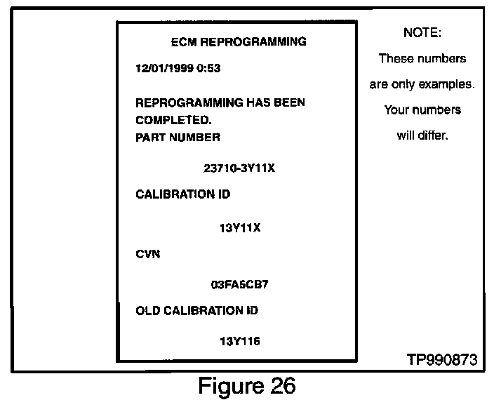 37. Once ECM Reprogramming is done, CONSULT II will print out a report (see Figure 26). Attach this to the repair order for future reference.