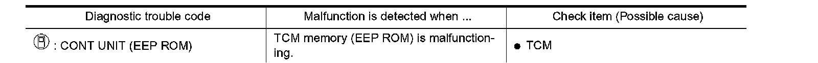DescriptionThe TCM consists of a microcomputer and connectors for signal input and output and for power supply. The unit controls the A/T.