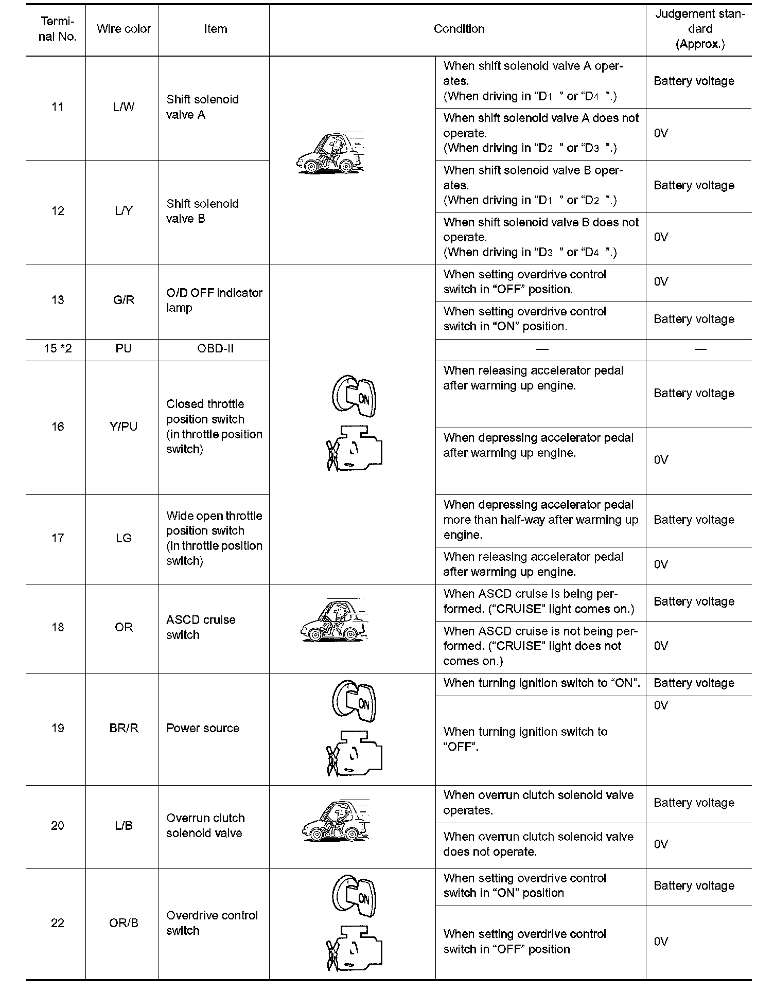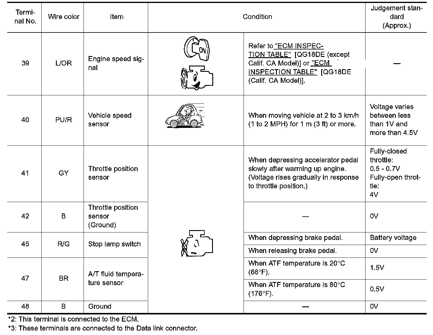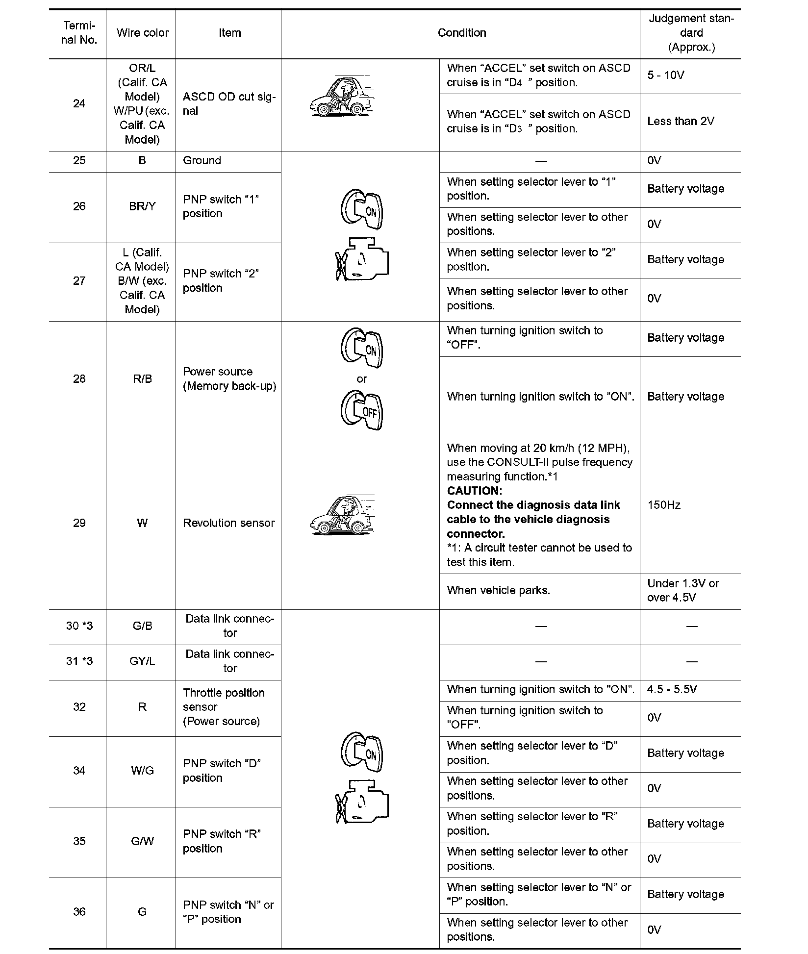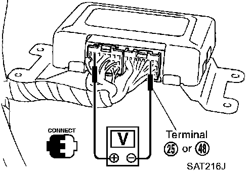 PREPARATION- Measure voltage between each terminal and terminal 25 or 48 by following "TCM INSPECTION TABLE".