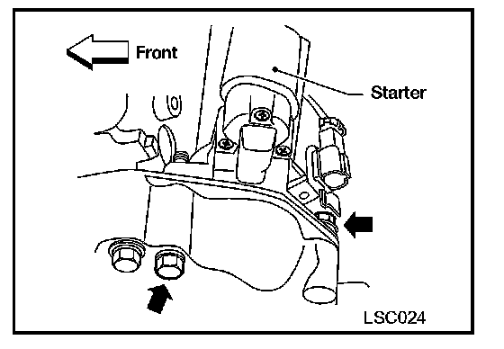 5. Remove the lower starter mounting bolt.