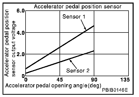 Accelerator pedal position sensor has two sensors. These sensors are a kind of potentiometers which transform the accelerator pedal position into output voltage, and emit the voltage signal to the ECM. In addition, these sensors detect the opening and closing speed of the accelerator pedal and feed the voltage signals to the ECM. The ECM judges the current opening angle of the accelerator pedal from these signals and controls the throttle control motor based on these signals.