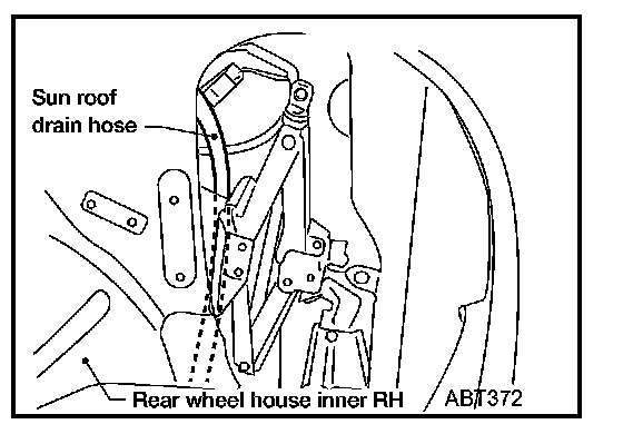 1. Remove the headlining to access the drain hose connections. (Refer to Removal and Installation)