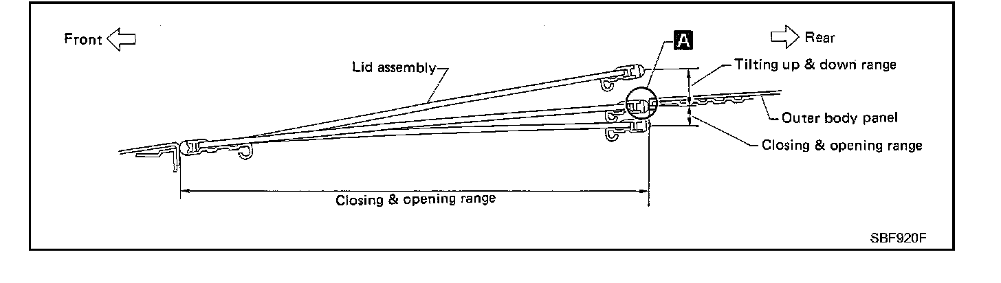 3. Set the lid assembly to the fully closed position [A] by operating the sunroof switch.