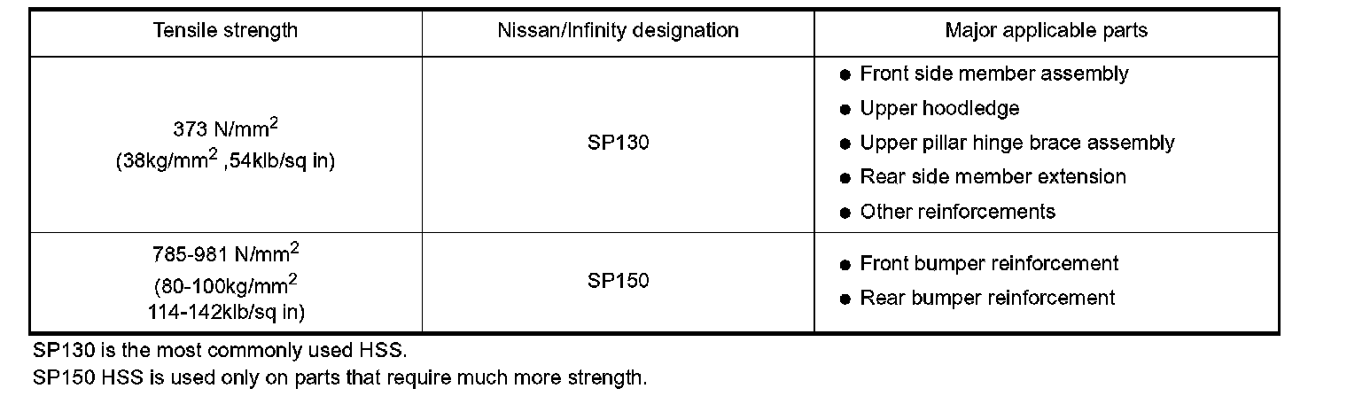 High Strength Steel (HSS) Used In Nissan/Infiniti Vehicles