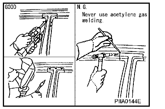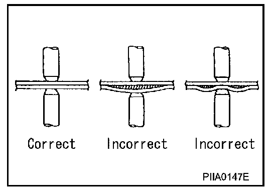 If spot welding is impossible, use M.I.G. welding. Do not use gas (torch) welding because it is inferior in welding strength.