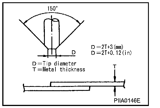 The electrode tip diameter must be sized properly according to the metal thickness.