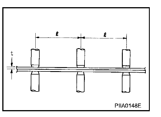The repair of reinforcements (such as side members) by heating is not recommended since it may weaken the component. When heating is unavoidable, do not heat HSS parts above 550 °C (1,022 °F).