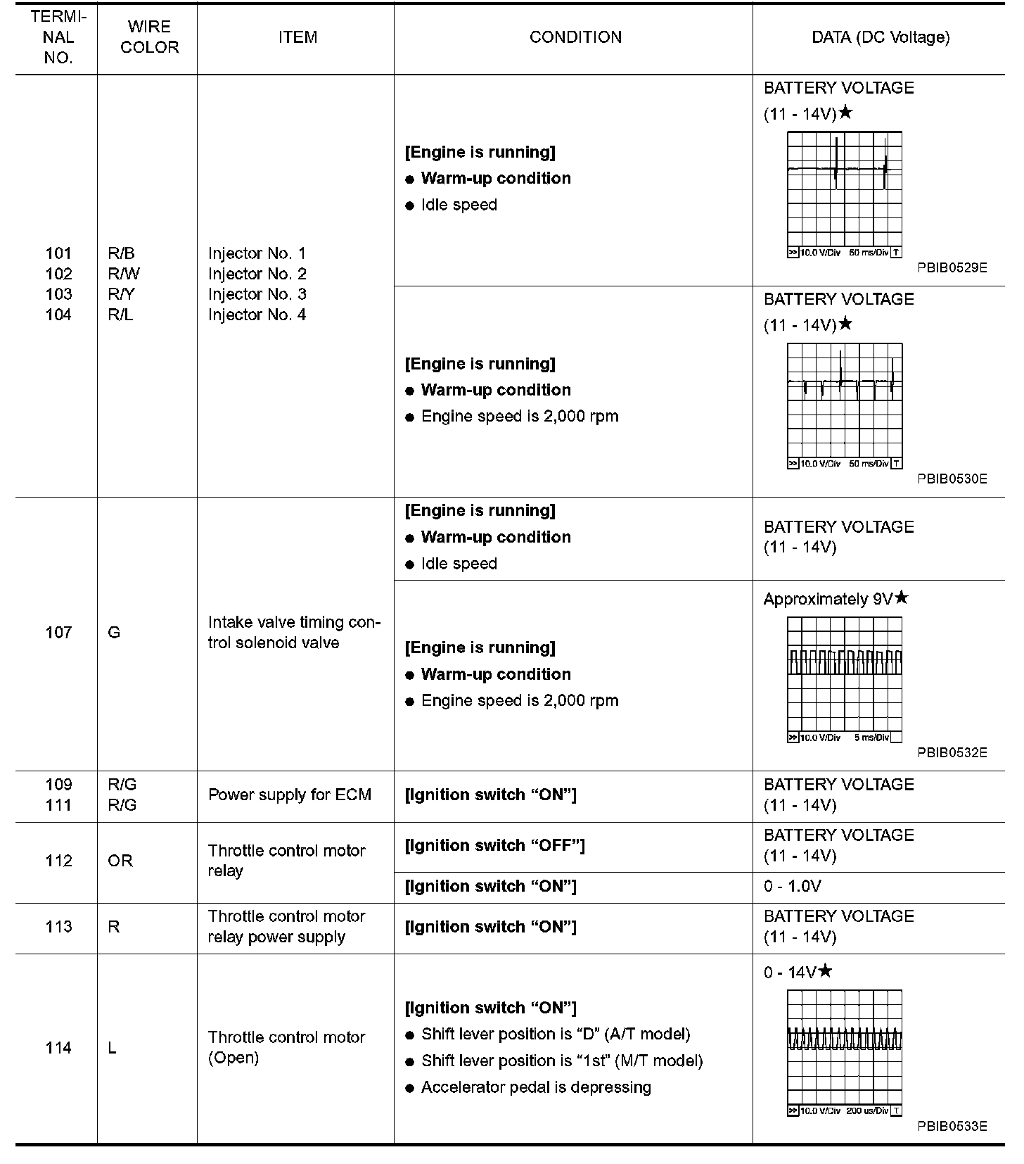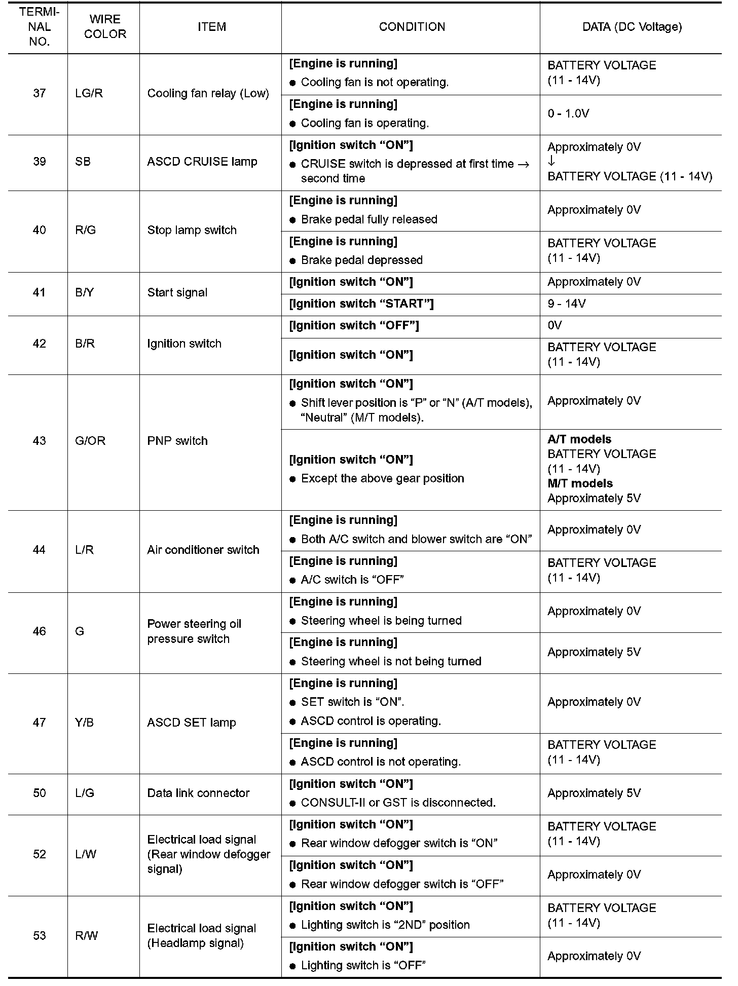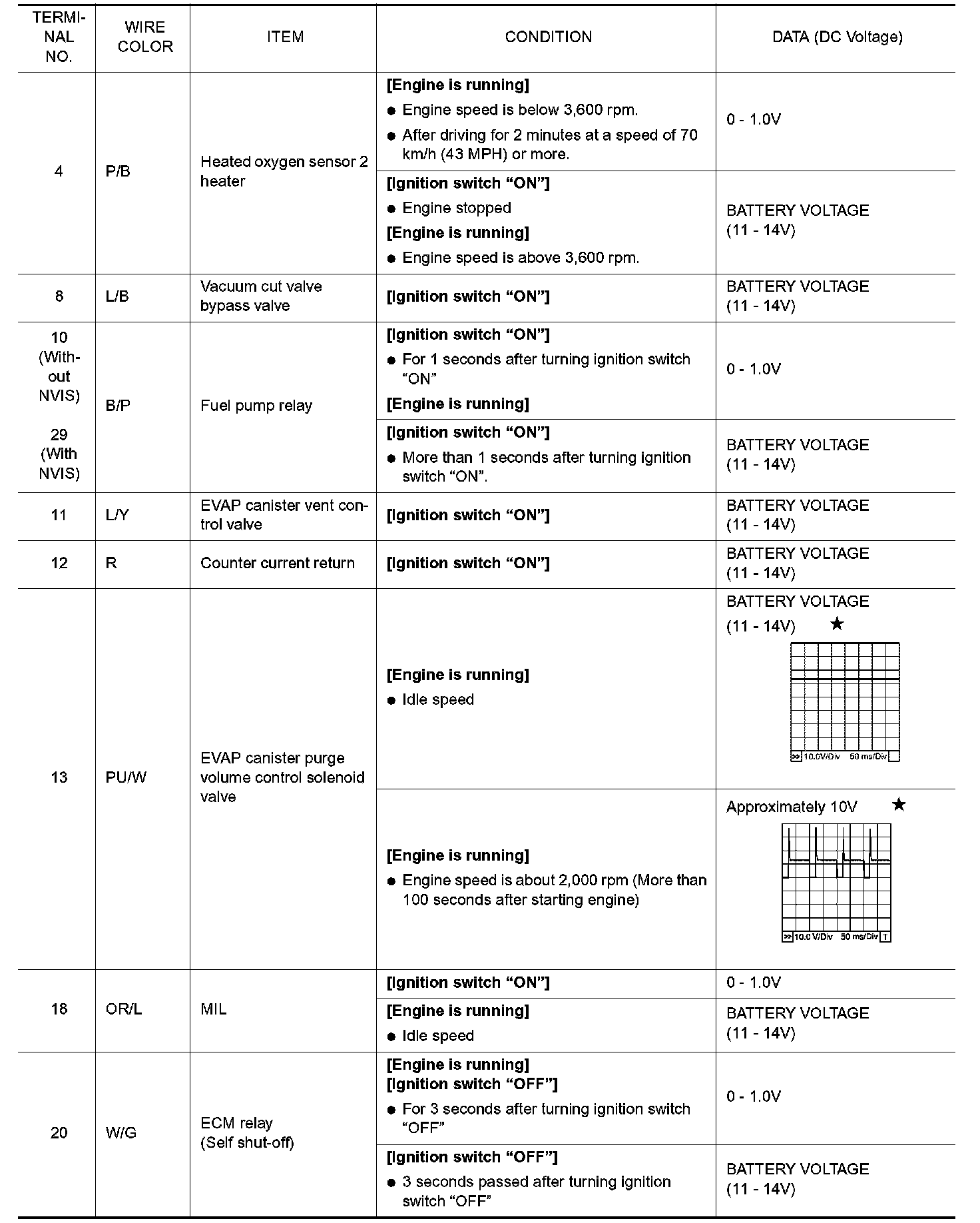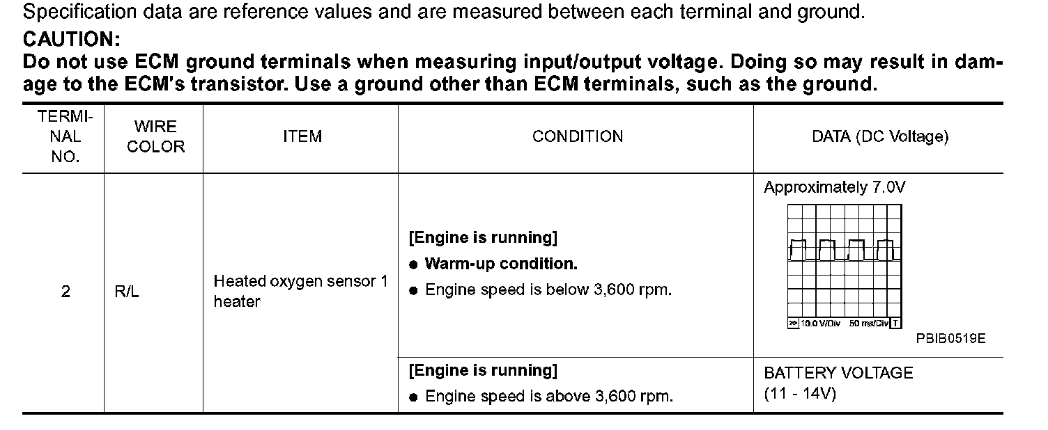 ECM Harness Connector Terminal Layout: