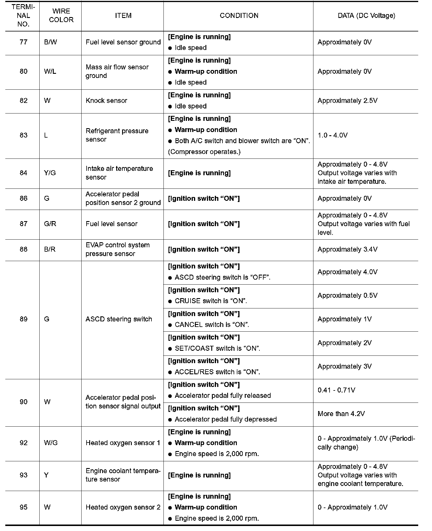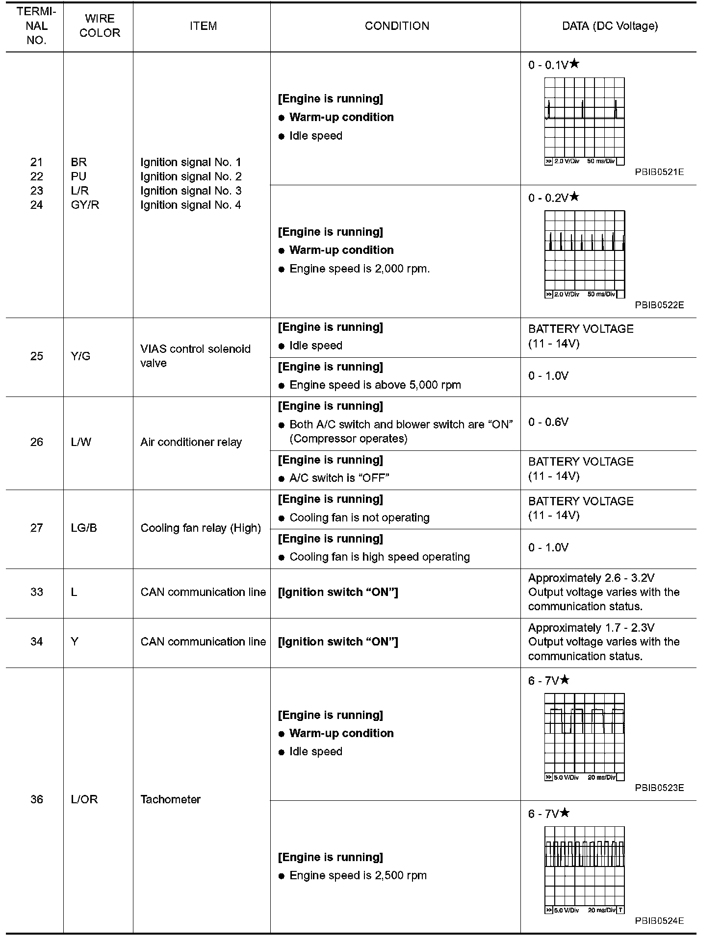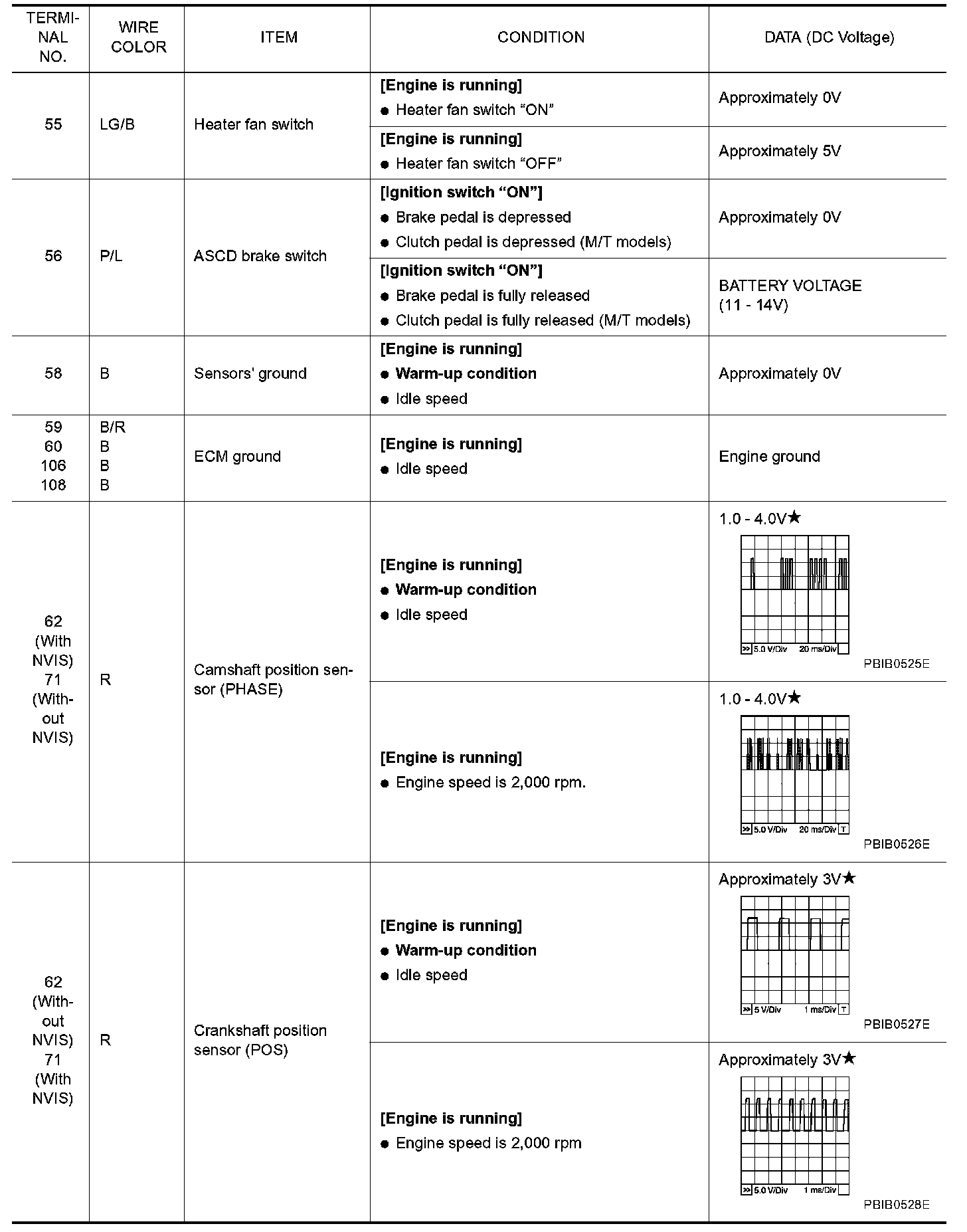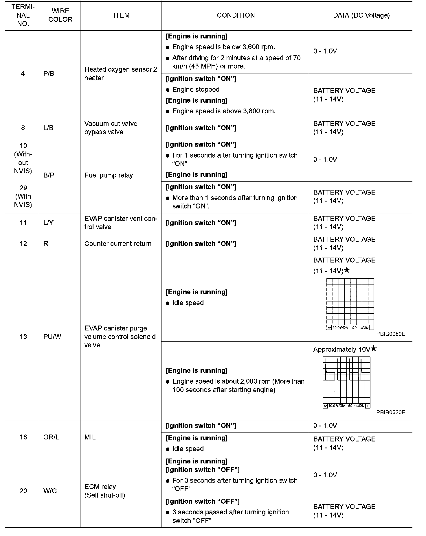 ECM Harness Connector Terminal Layout: