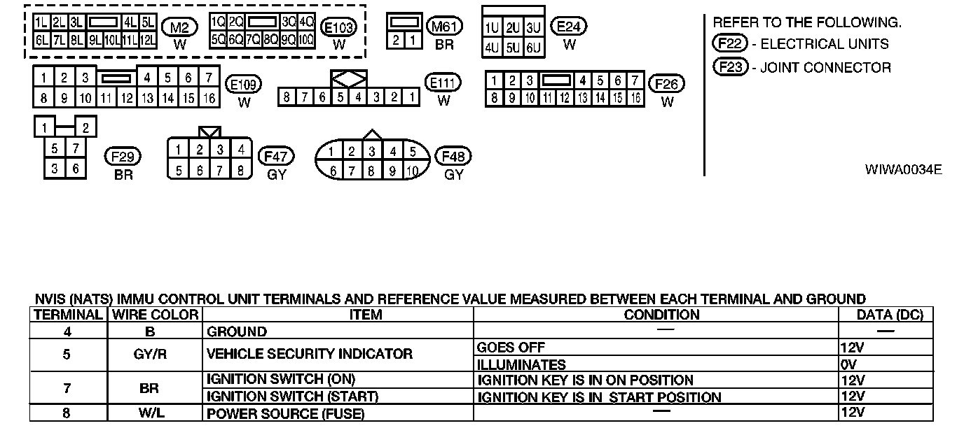 Immobilizer Control Unit Terminals And Reference Value Measured Between Each Terminal And Ground: