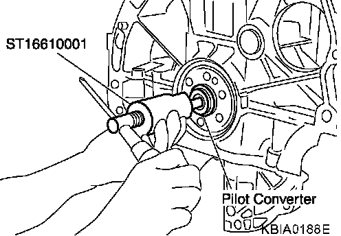 ^ Using a drift with 33 mm (1.30 inch) diameter, push pilot converter into the end of the crankshaft.