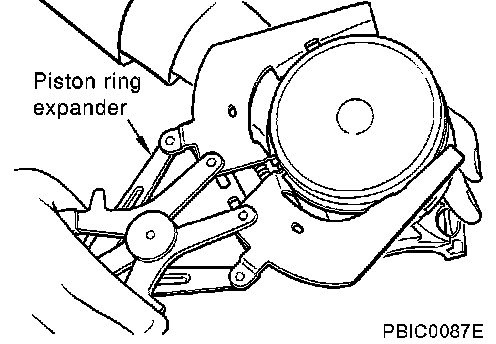 10. Using a piston ring expander, install the piston rings. Assemble the components in their original positions.
