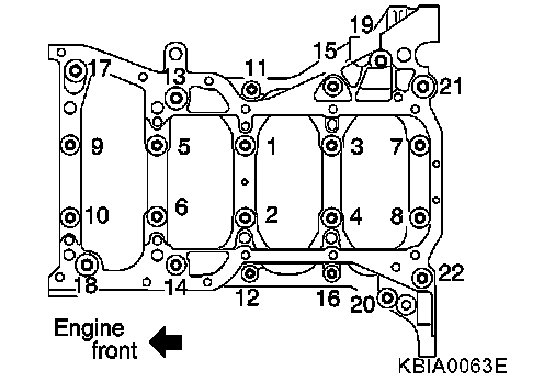 Third tightening, bolts 11 - 22 only: 19.6 - 24.5 Nm (2.0 - 2.5 kg-m, 15 - 18 ft. lbs.)