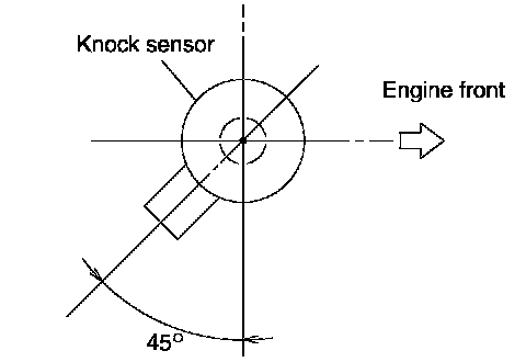 ^ Install the knock sensor with the connector facing lower left by 45° as shown.