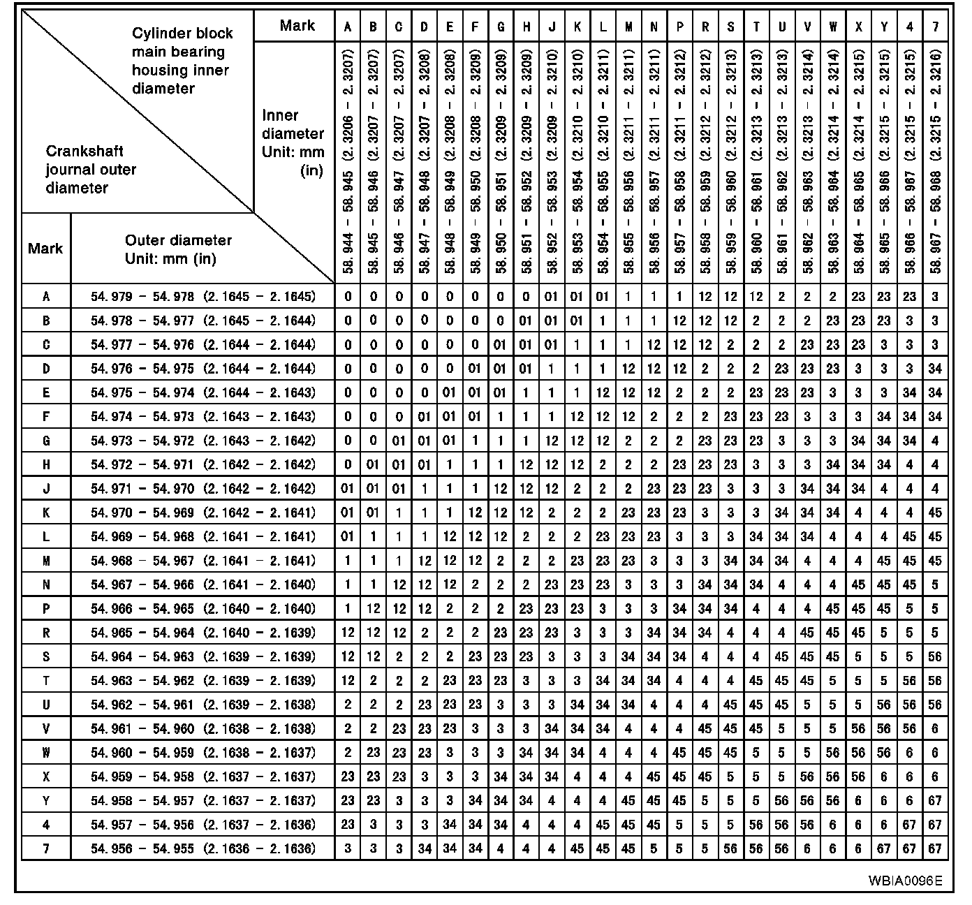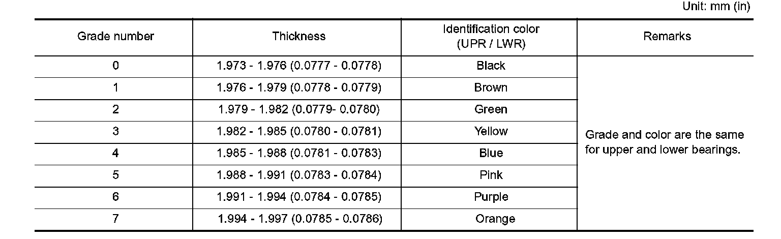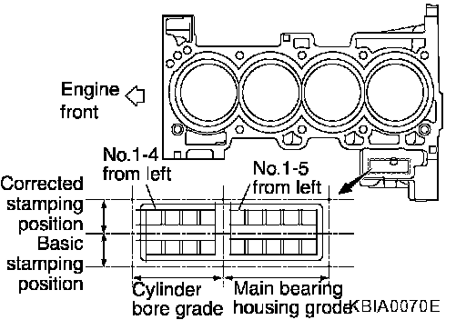 2. Apply journal diameter grade stamped on crankshaft front side to column in "Main Bearing Selection Table".