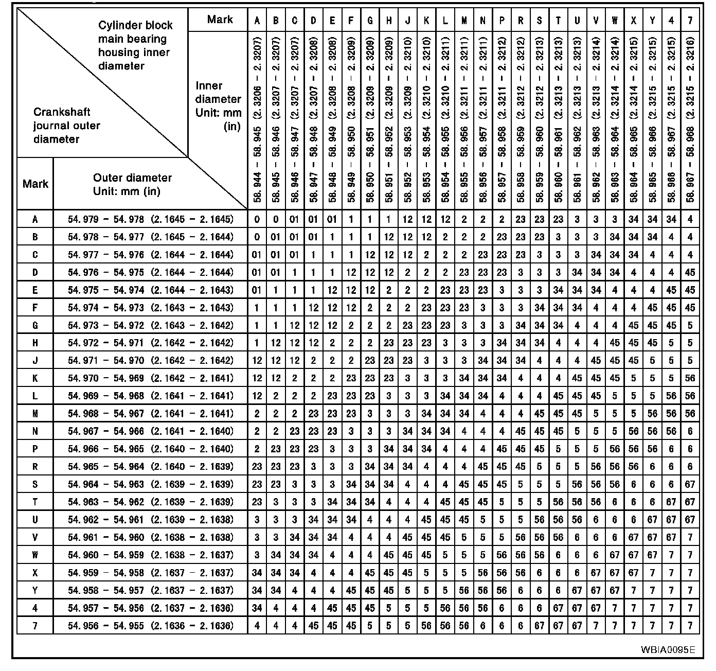Main Bearing Selection Table (No. 2 and 4 journals)
