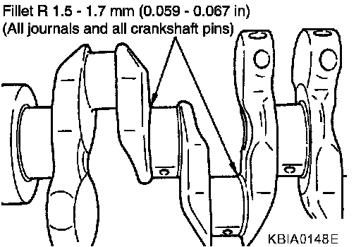 CAUTION: Do not damage fillet R when grinding crankshaft journal in order to use an undersize bearing (all journals).