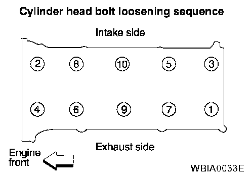 9. Remove cylinder head loosening bolts in the numerical order as shown.