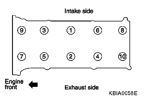 ^ If cylinder head bolts are re-used, check their outer diameters before installation. Refer to "Outer Diameter of Cylinder Head Bolts".