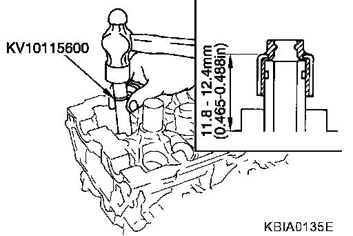 When valve guide is removed, replace with oversized (0.2 mm, 0.008 inch) valve guide.