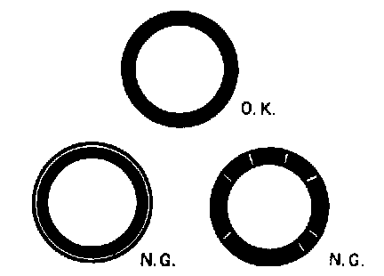 ^ If not, grind to adjust valve fitting and check again. If the contacting surface still has N.G. conditions even after the re-check, replace the valve seat.