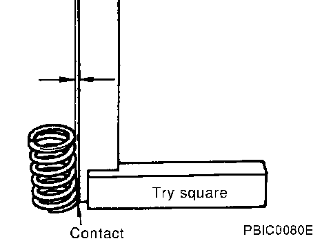 Set try square along the side of the valve spring and rotate the spring. Measure the maximum clearance between the top face of the spring and the try square.