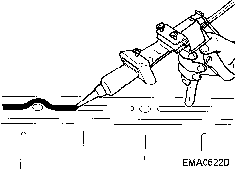 4. Apply the sealant without breaks to the specified location with the specified dimensions.