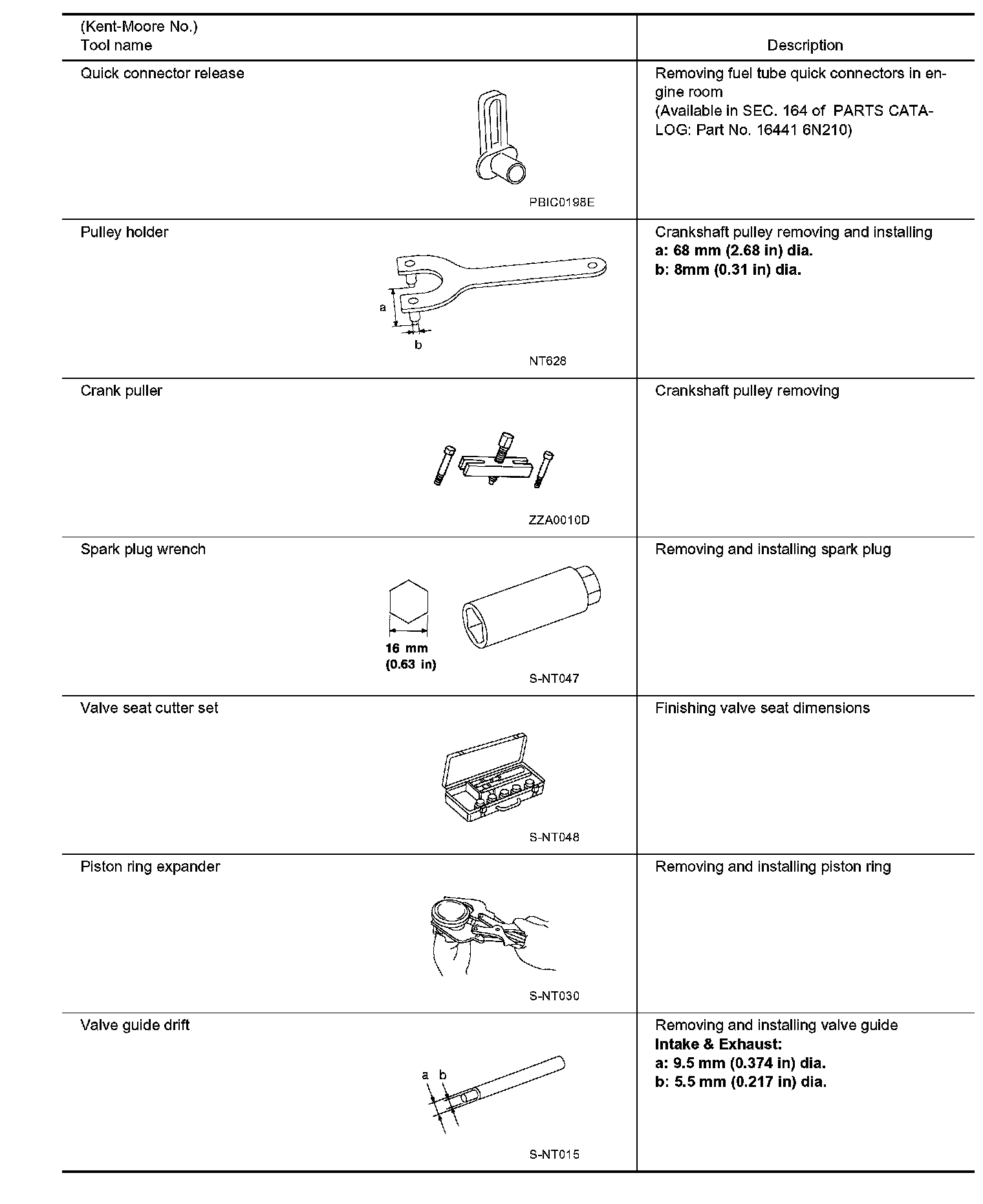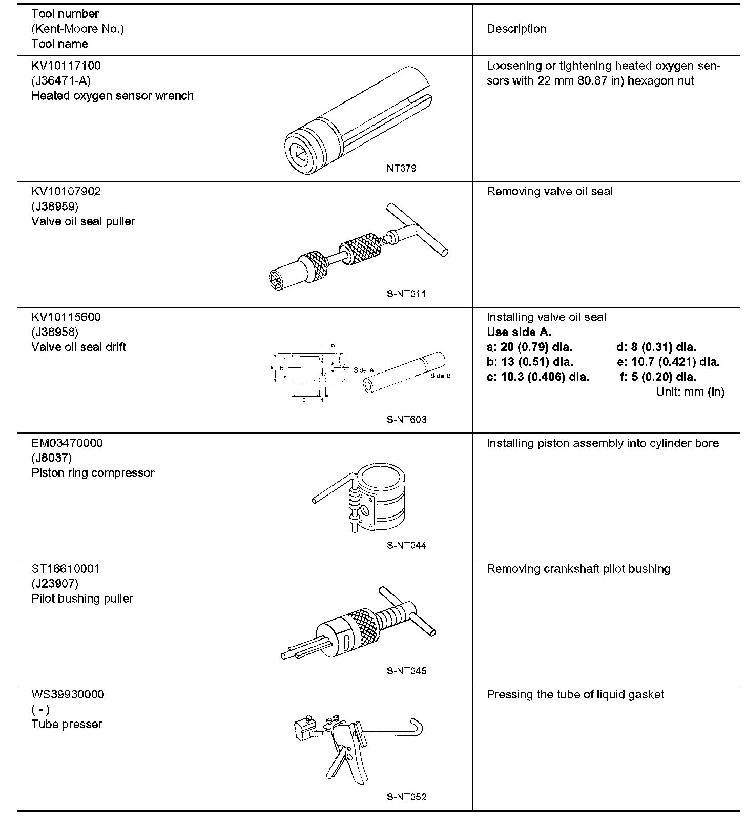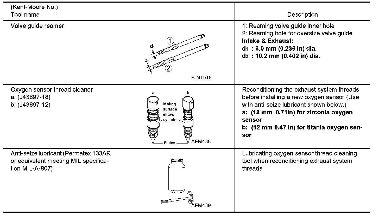 The actual shapes of the Kent-Moore tools may differ from those of the special service tools illustrated here.