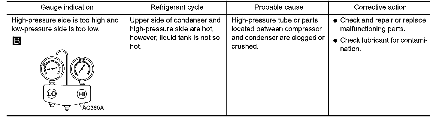 Whenever system's high and/or low side pressure is abnormal, diagnose using a manifold gauge.