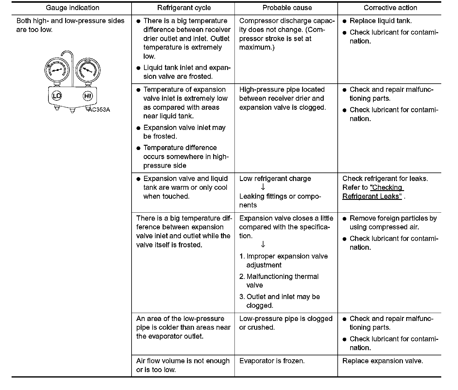 Whenever system's high and/or low side pressure is abnormal, diagnose using a manifold gauge.