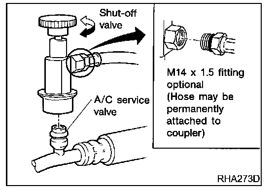 Be certain that the service hoses display the markings described (colored hose with black stripe). All hoses must include positive shut off devices (either manual or automatic) near the end of the hoses opposite the manifold gauge.