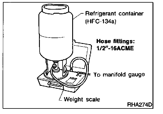 Verify that no refrigerant other than HFC-134a (R-134a) and specified lubricants have been used with the scale. If the scale controls refrigerant flow electronically, the hose fitting must be 1/2"-16 ACME.