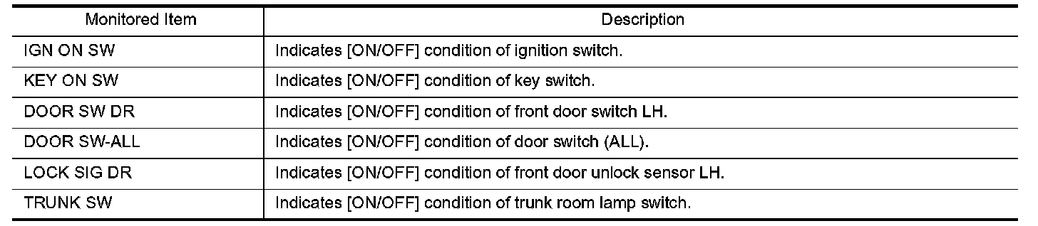 INT Lamp - Data Monitor (With Remote Keyless Entry System):