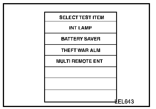CONSULT-II Inspection Procedure (With Remote Keyless Entry System)"INT LAMP"/"BATTERY SAVER"