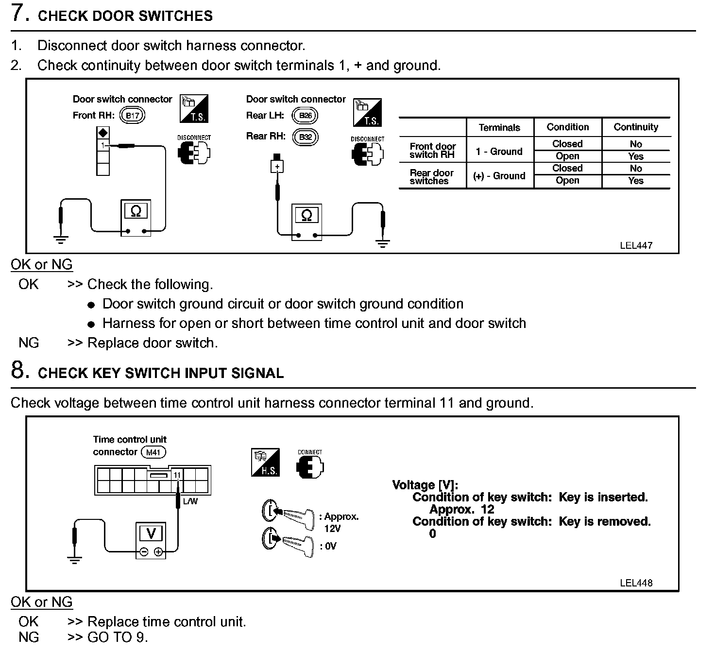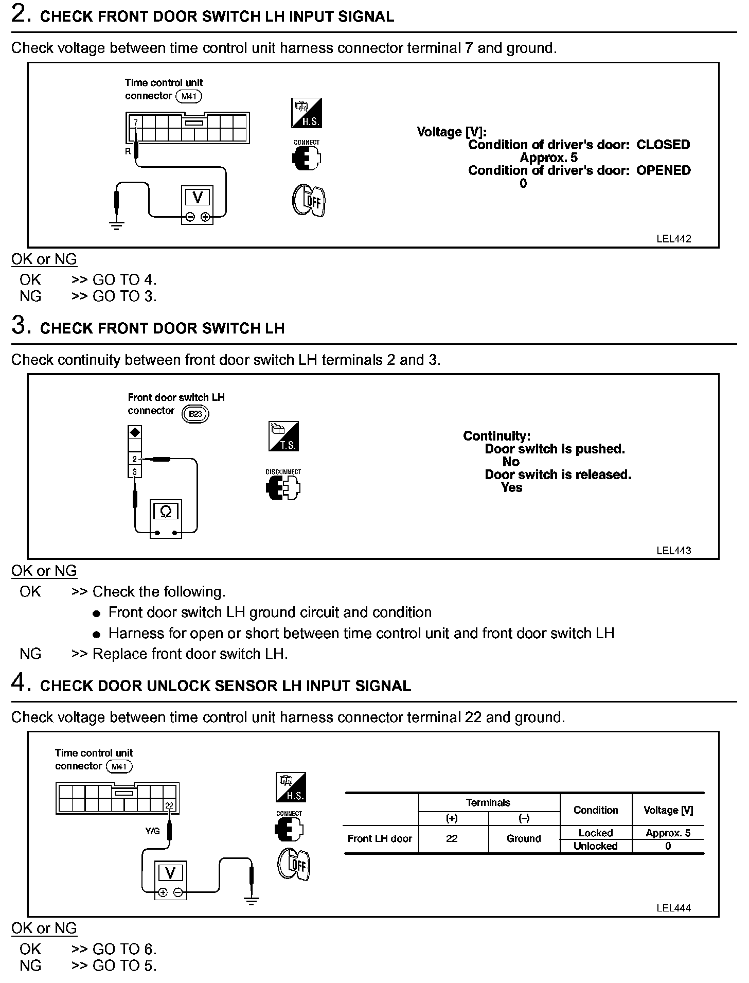 Trouble Diagnoses for Interior Lamp Timer (With Power Door Locks and Without Remote Keyless Entry System)Diagnostic Procedure 1 Step 1: