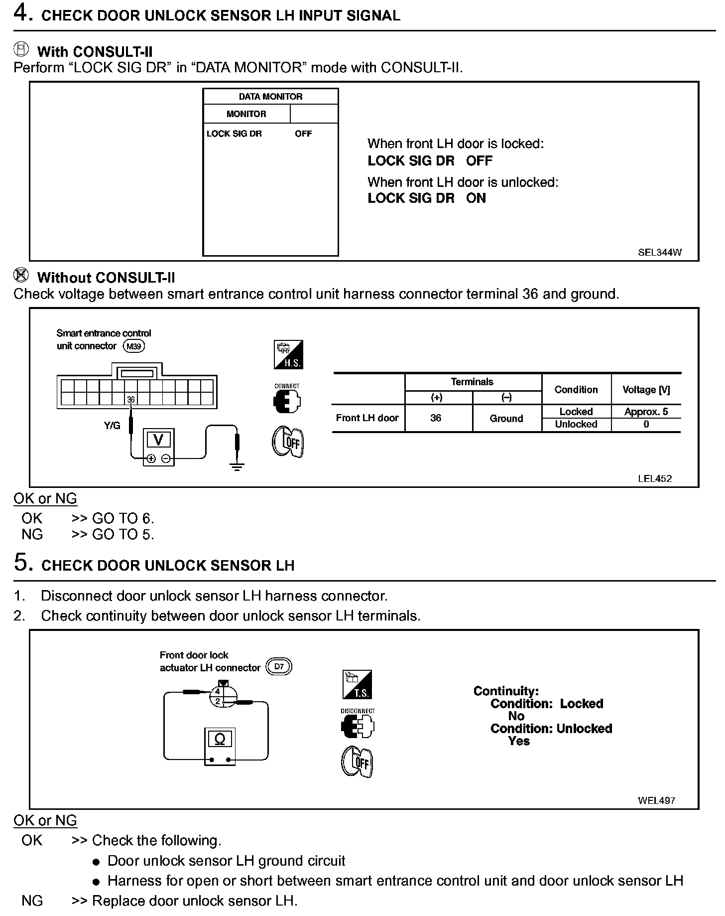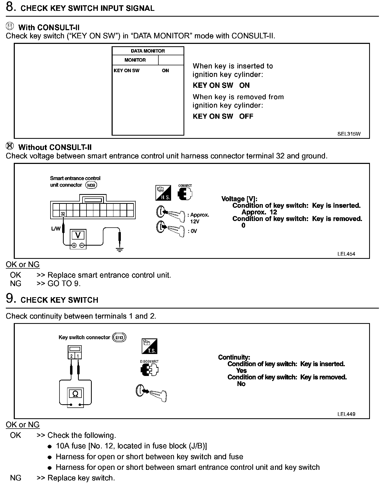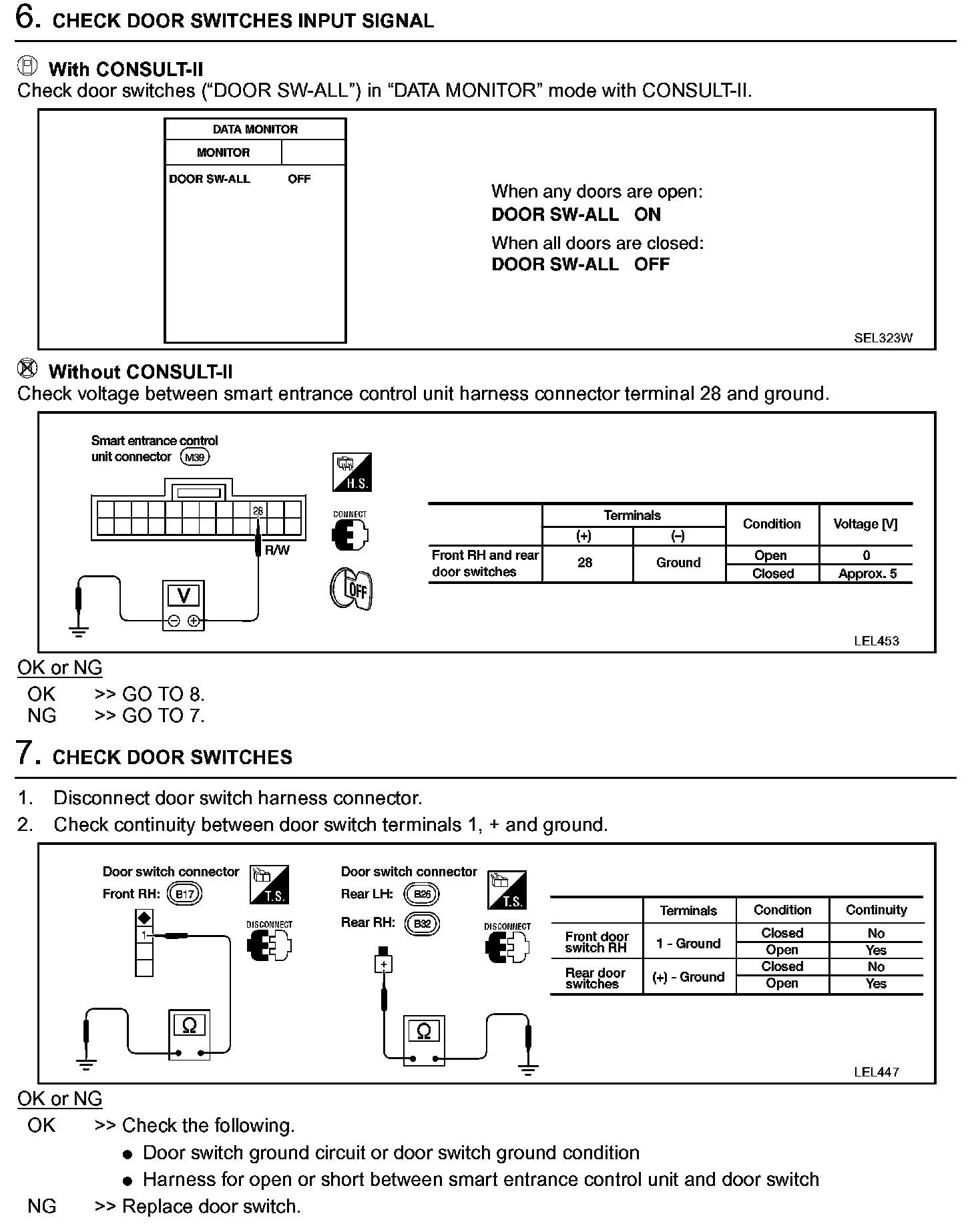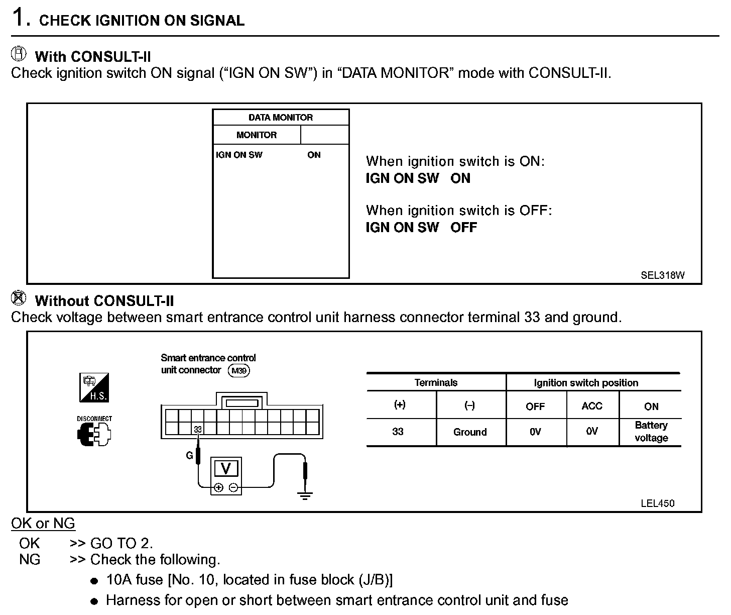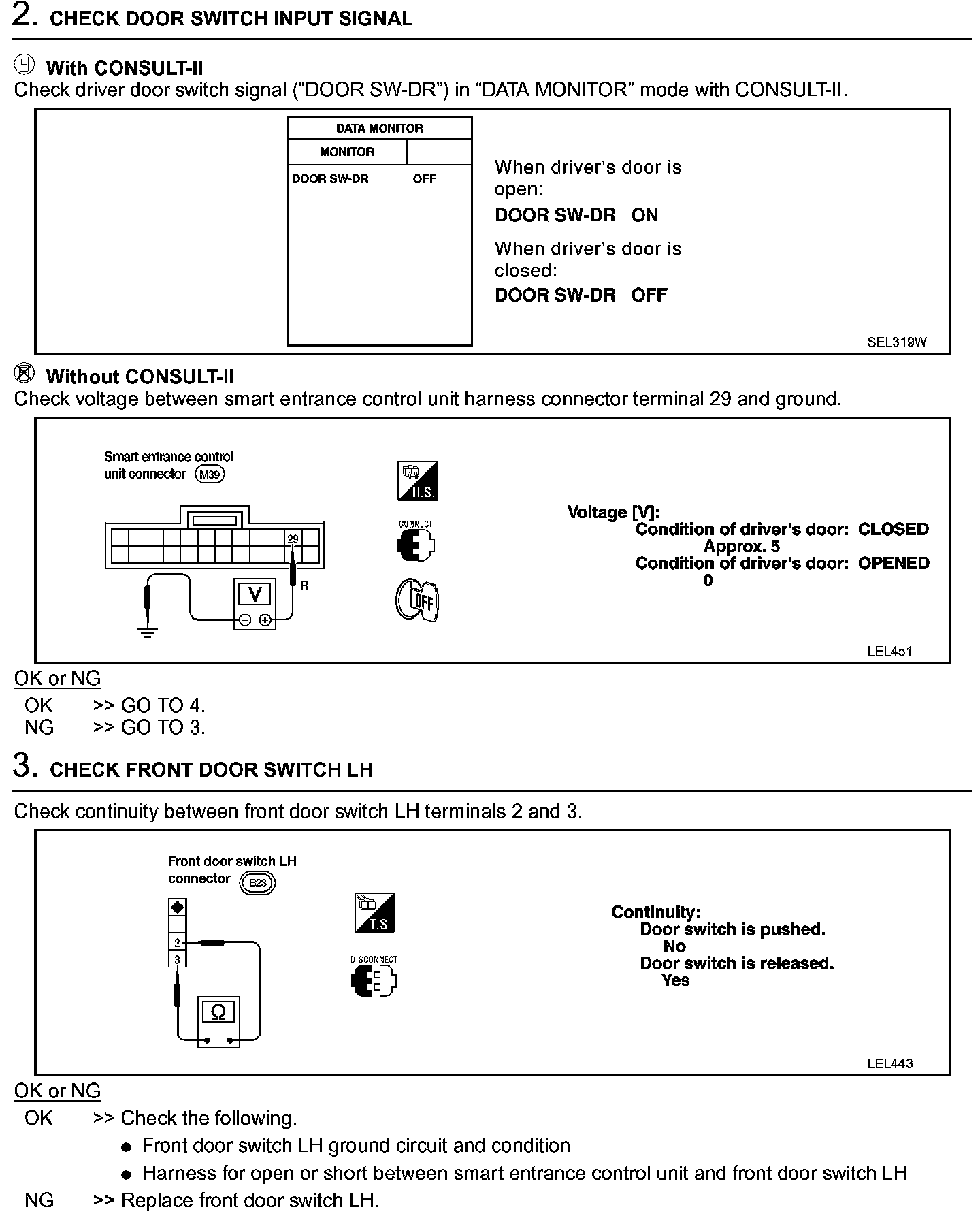 Trouble Diagnoses for Interior Lamp Timer (With Remote Keyless Entry System)Diagnostic Procedure 1 Step 1: