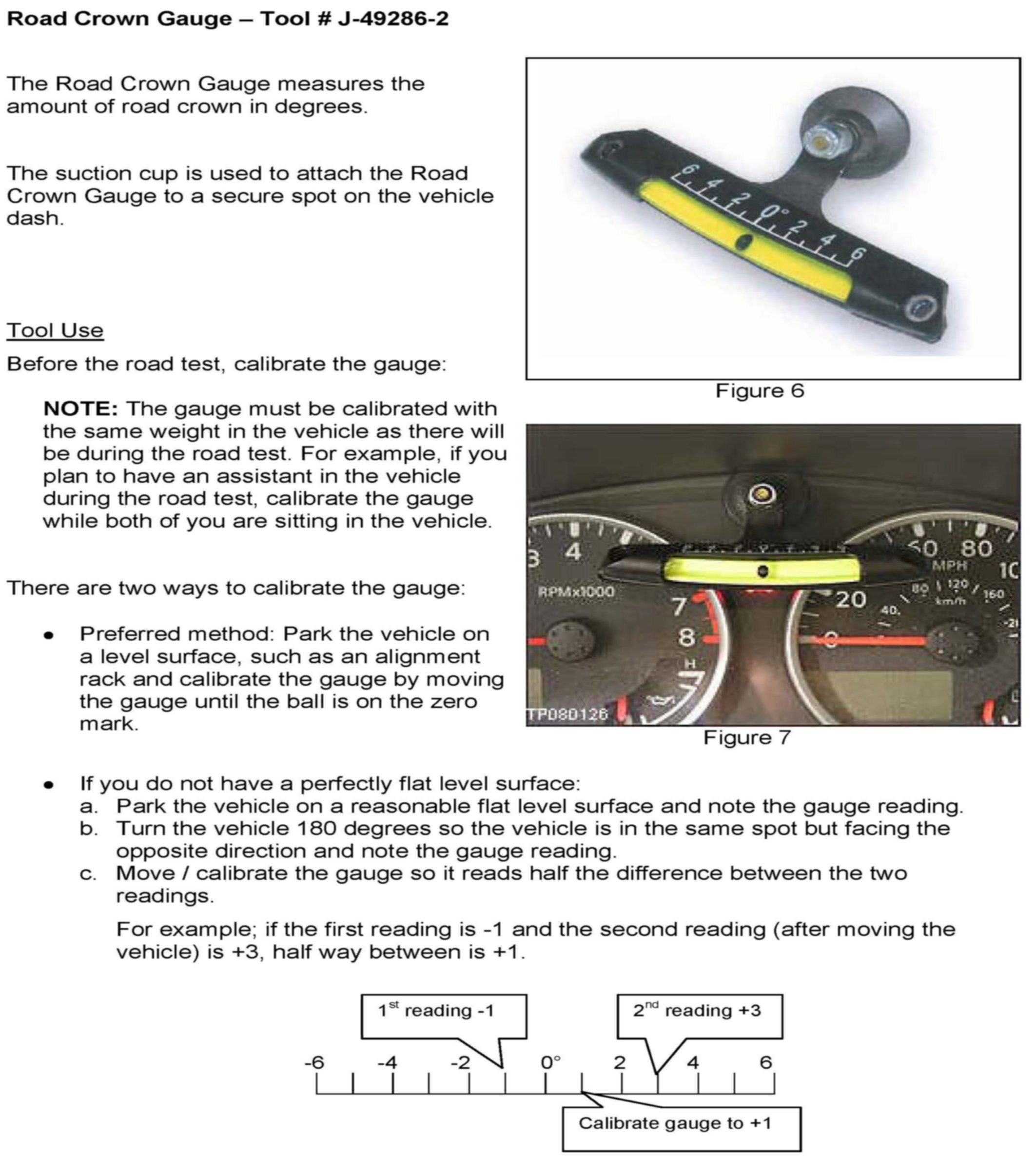 5. When the road test is completed, remove the Road Crown Gauge, leave the Steering Wheel Off-Set Gauge in place until the Service Procedure is complete.