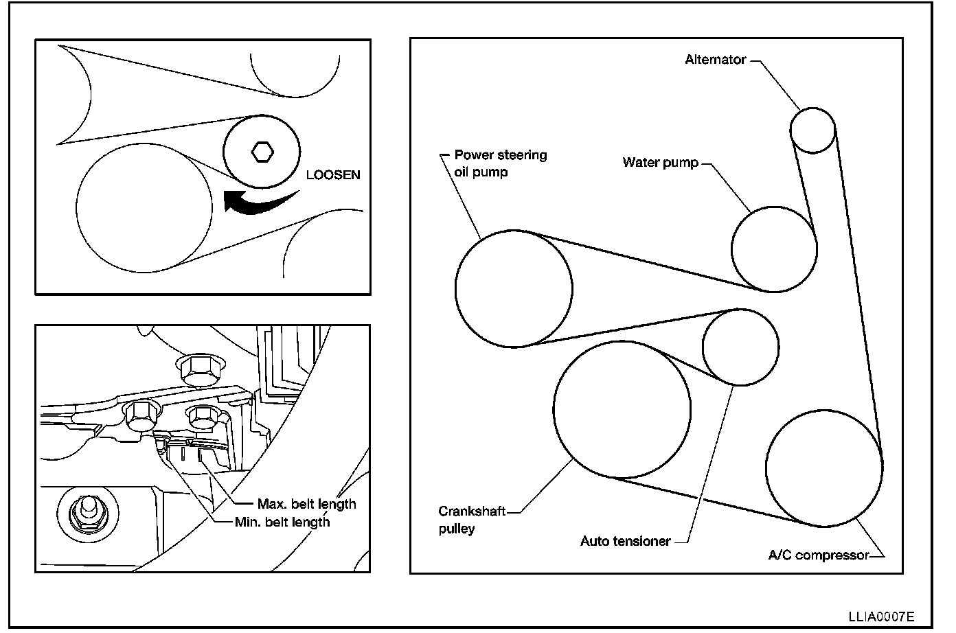 - Belt tensioning is not necessary, as it is automatically adjusted by auto belt tensioner.