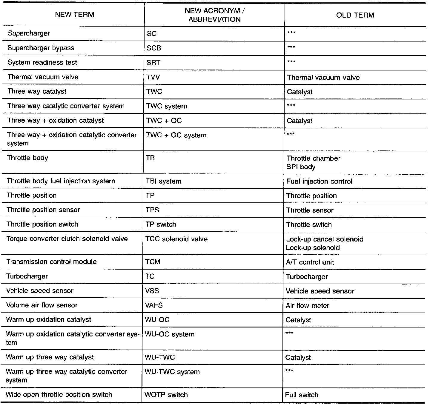 SAE J1930 Terminology ListAll emission related terms used in this publication in accordance with SAE J1930 are listed. Accordingly, new terms, new acronyms/abbreviations and old terms are listed in the chart.