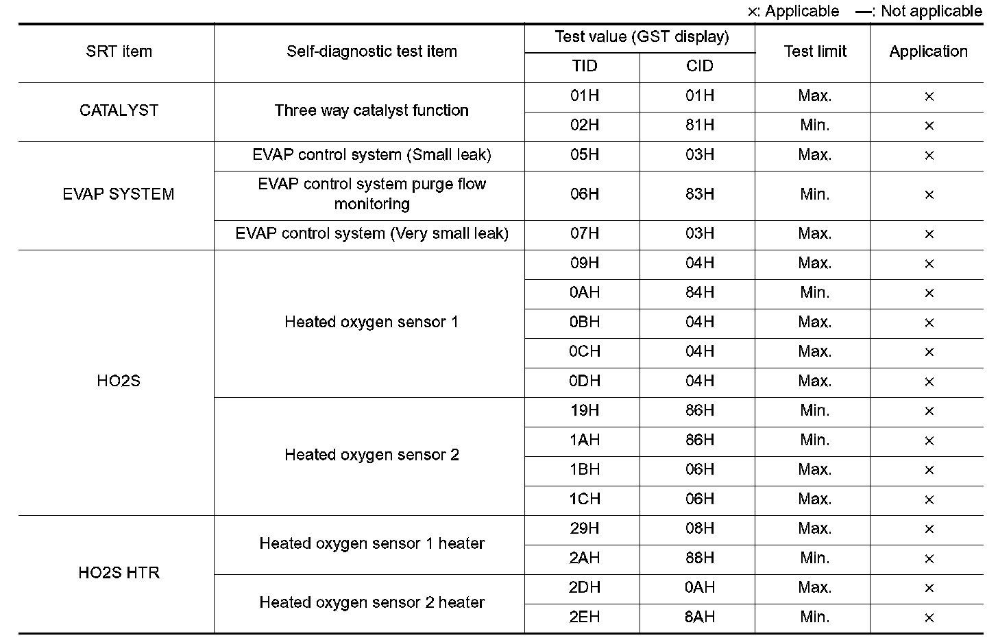 The test value is a parameter used to determine whether a system/circuit diagnostic test is "OK" or "NG" while being monitored by the ECM during self-diagnosis. The test limit is a reference value which is specified as the maximum or minimum value and is compared with the test value being monitored.