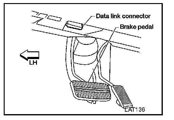 1. Turn ignition switch OFF.2. Connect "CONSULT-II" to data link connector, which is located under LH dash panel.