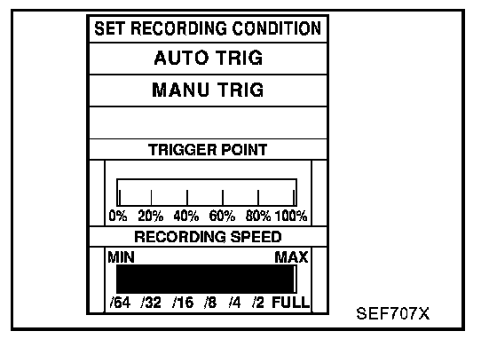 The recording time after the malfunction detection and the recording speed can be changed by "TRIGGER POINT" and "Recording Speed". Refer to CONSULT-II OPERATION MANUAL.