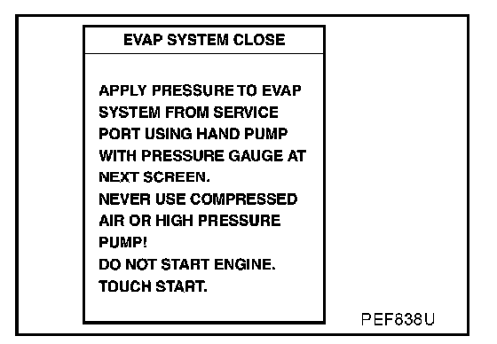 - Do not exceed 4.12 kPa (0.042 kg/sq.cm, 0.6 psi) of pressure in EVAP system.