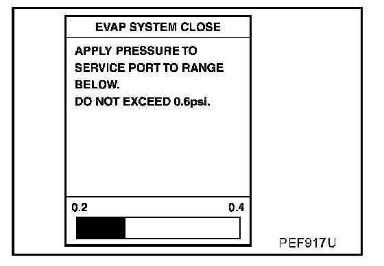 6. Apply positive pressure to the EVAP system until the pressure indicator reaches the middle of the bar graph.