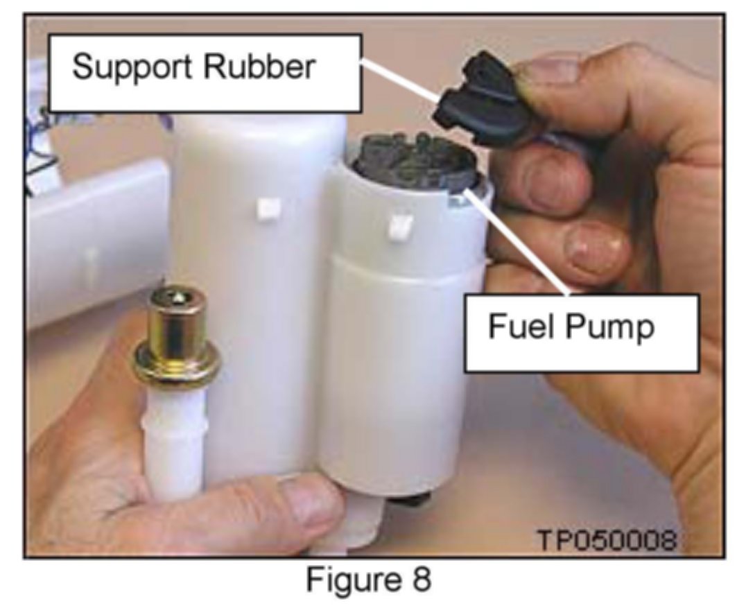 10. Remove the support rubber from the bottom of the fuel pump and discard it.