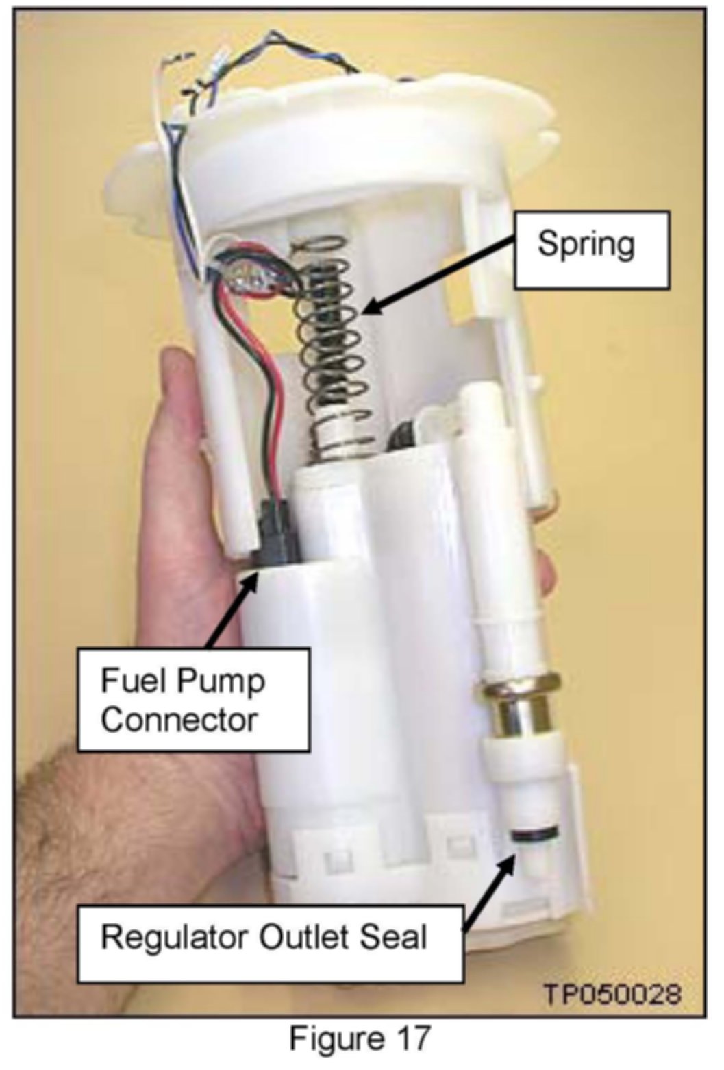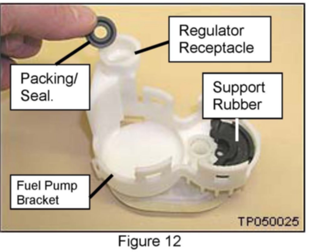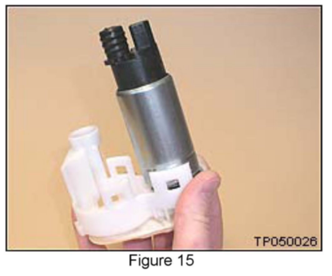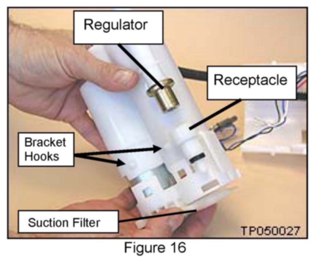 12. Once the fuel pump bracket and fuel pump have been removed, discard the flange and the filter/pressure regulator.
