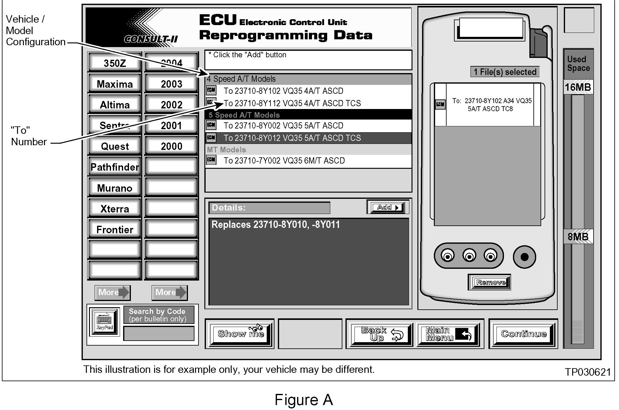 1. Select vehicle model and model year (Example: Altima, 2003).