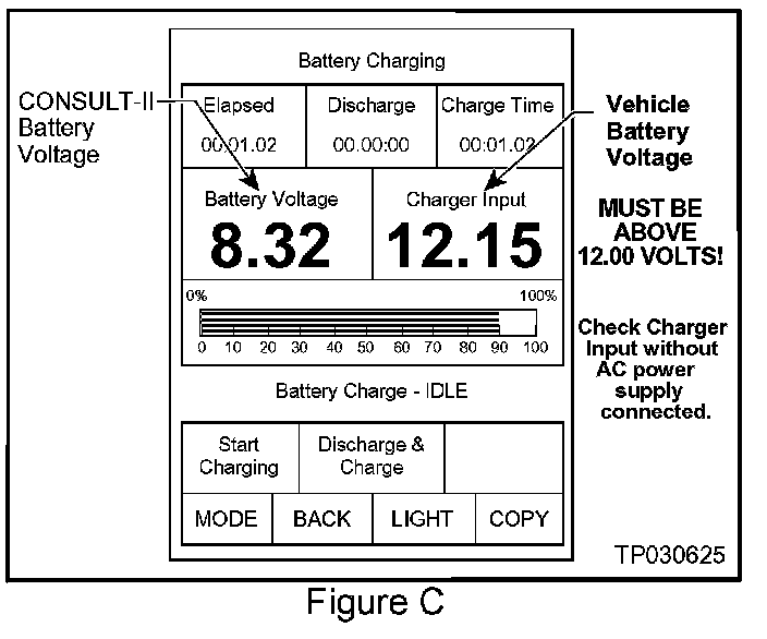 3. Check the CONSULT-II's "Charger Input" reading (see Figure C).